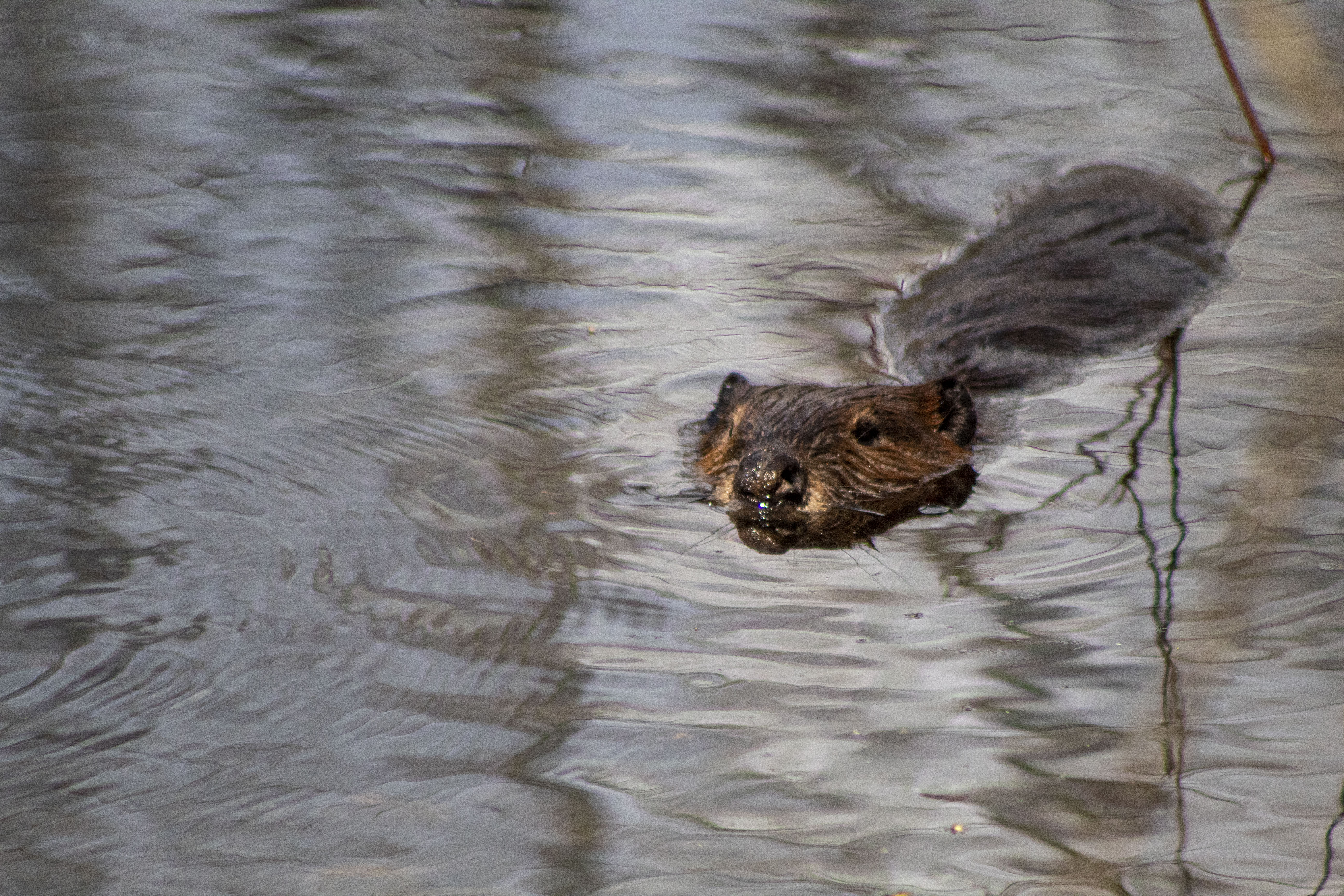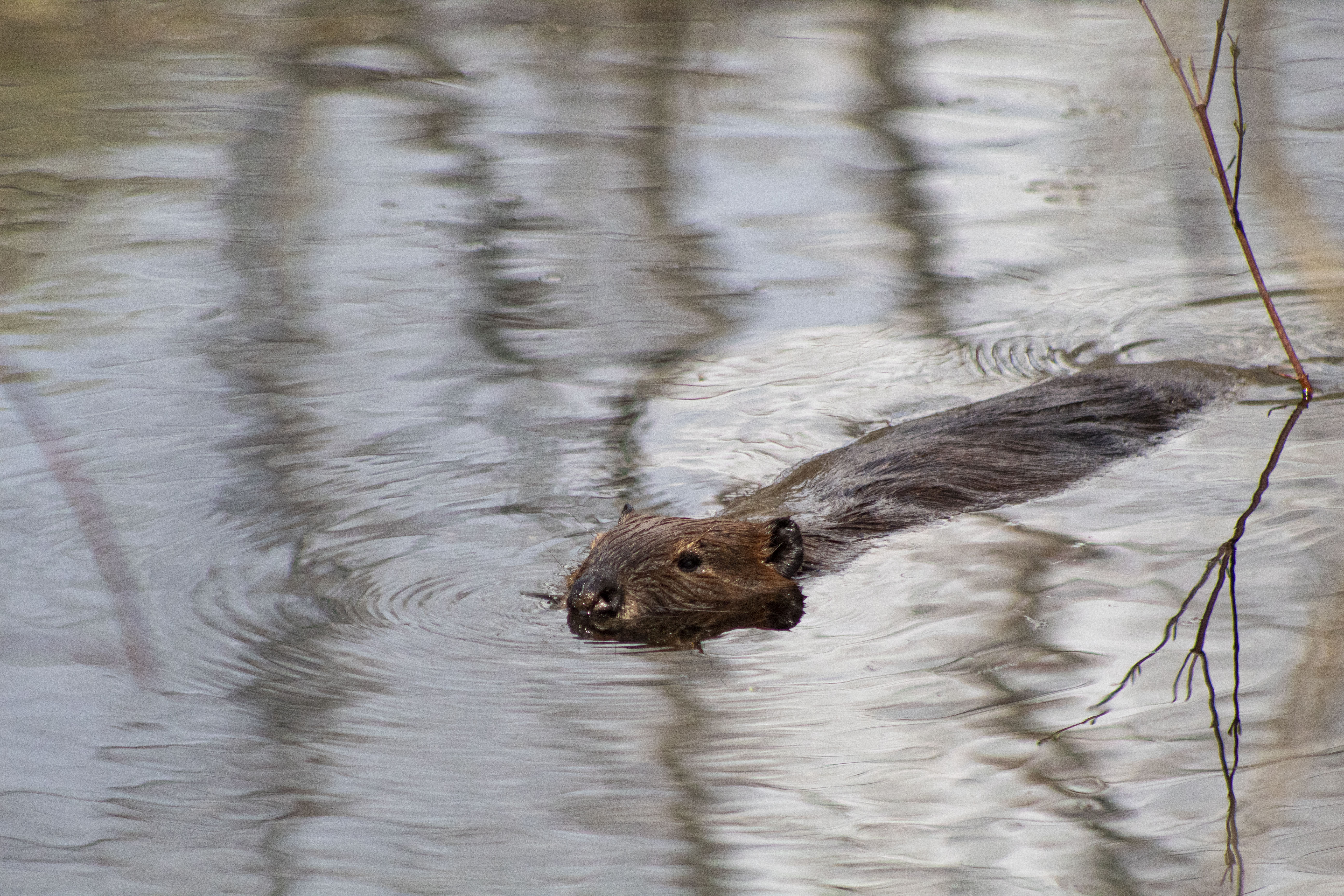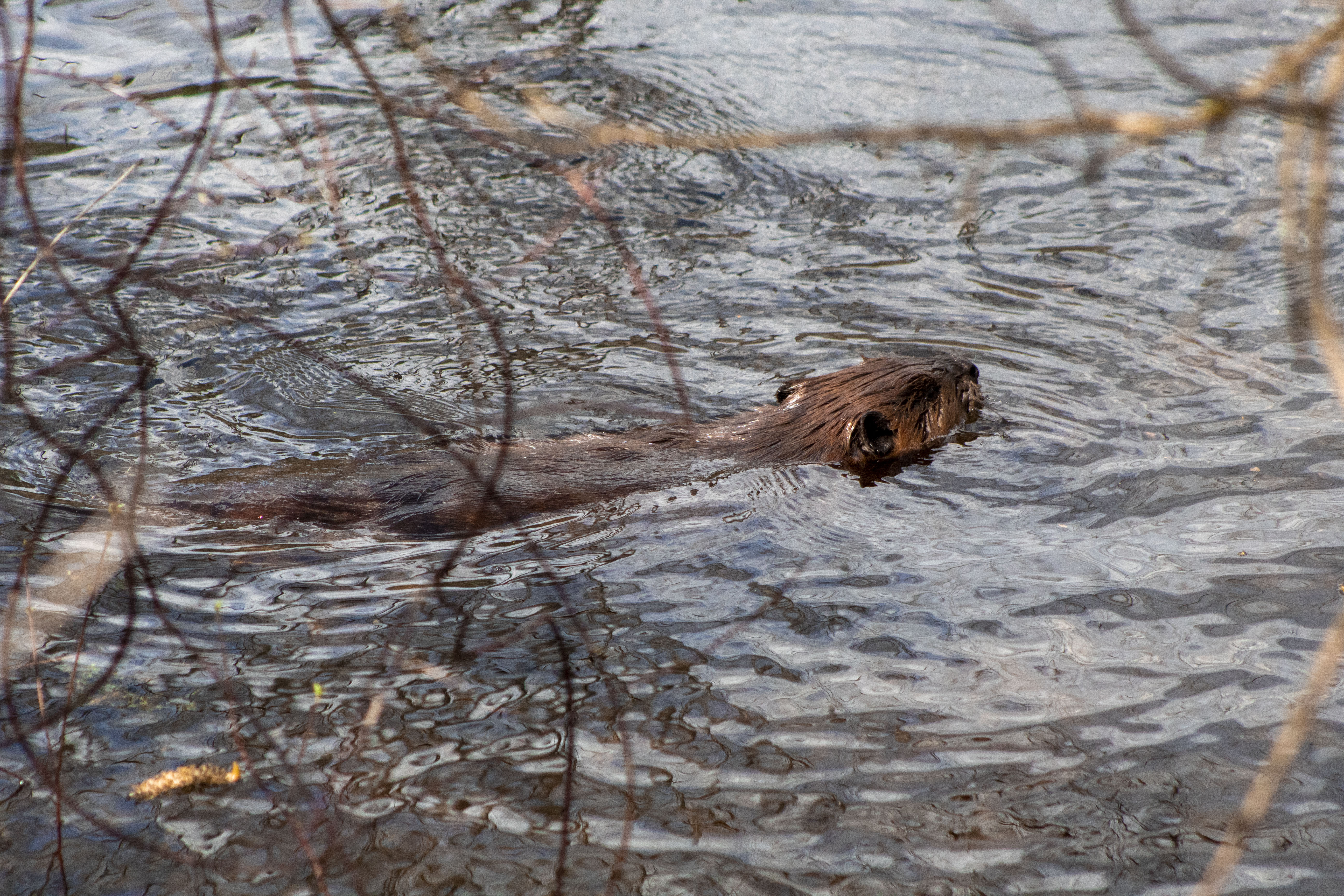 A surprise guest came to the pond while I was sitting there with the turtles; a beaver came to the pond! He swam around until he hid in a bush where I unfortunately could not get a clear picture of him.
