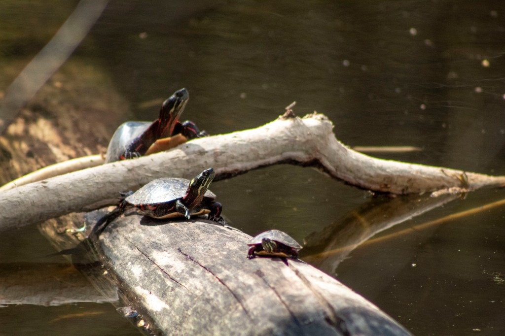 To capture these images, I used my Rebel T6 camera’s zoom lens. This allows a user to not have to get close to a subject, which is beneficial for the animals so you can remain at a comfortable distance from them. Originally spooked by the family, we sat patiently for the turtles to make their way back to their designated sunbathing areas.