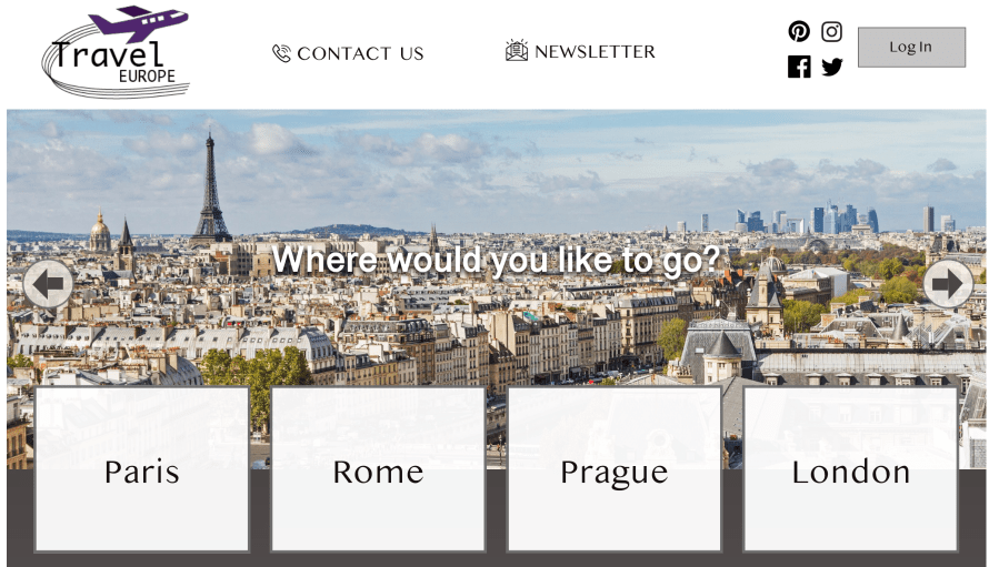 Our assignment was to create a travel website of our choice. The layout, design, and concept was created by me in Adobe XD. A user may view the top places to visit in Europe and log in to get quotes for their trip. A contact and newsletter page was also included to mimic an actual traveling website.